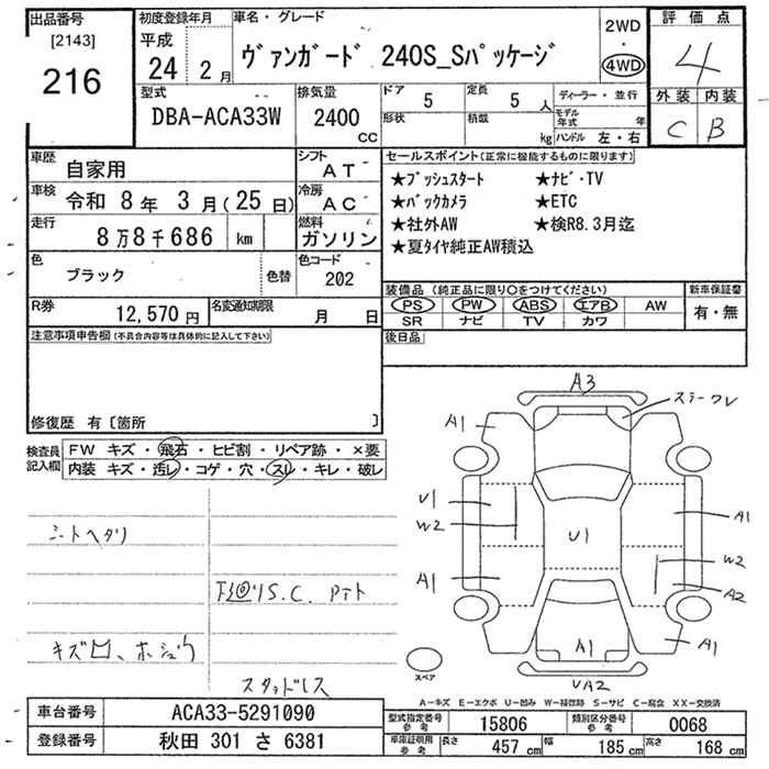 TOYOTA VANGUARD 4WD 240S S PACKAGE - лот 216