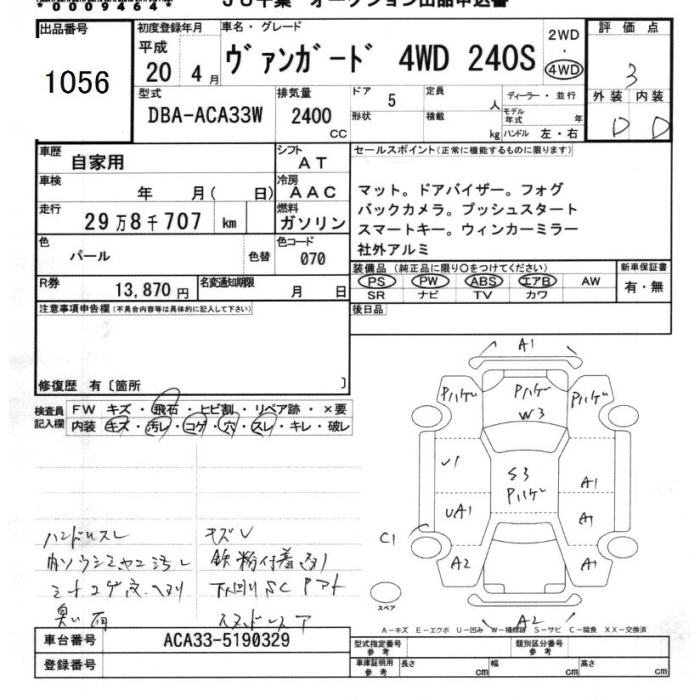 TOYOTA VANGUARD 4WD 240S - лот 1056