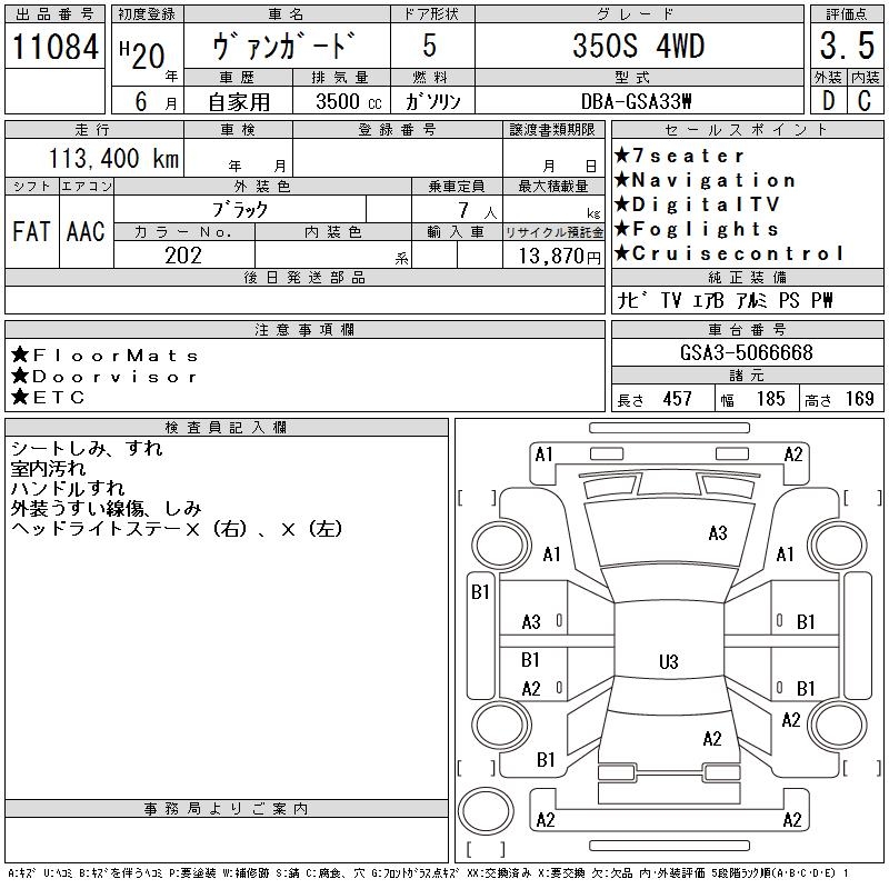 TOYOTA VANGUARD 350S 4WD - лот 11084