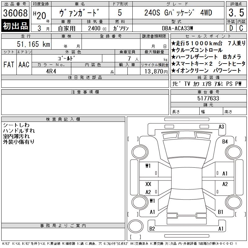 TOYOTA VANGUARD 240S G PACKAGE 4WD - лот 36068