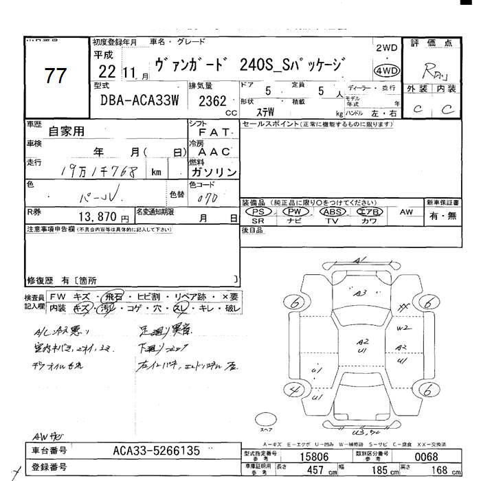 TOYOTA VANGUARD 4WD 240S S PACKAGE - лот 77