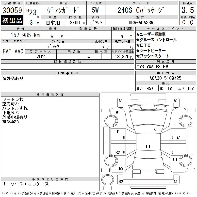 TOYOTA VANGUARD 240S G PACKAGE - лот 30059