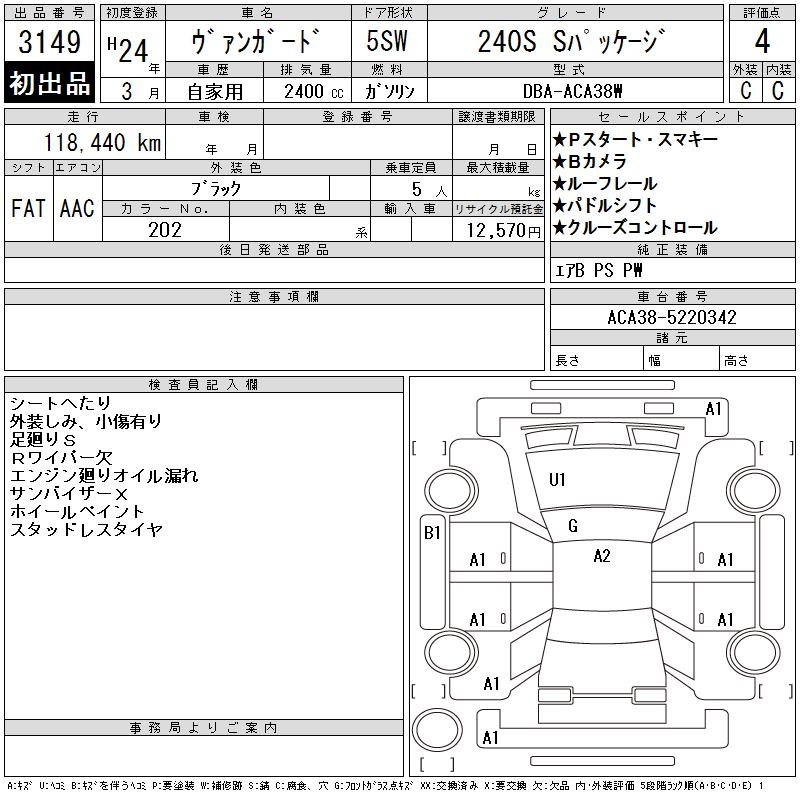 TOYOTA VANGUARD 240S S PACKAGE - лот 3149