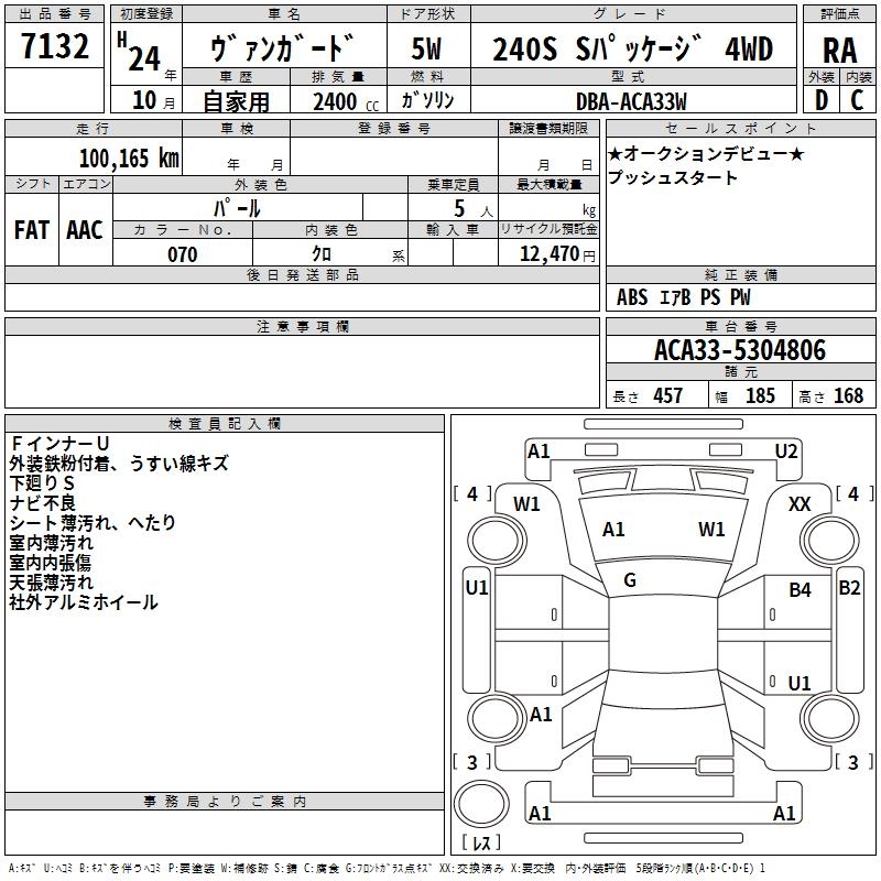 TOYOTA VANGUARD 240S S PACKAGE 4WD - лот 7132