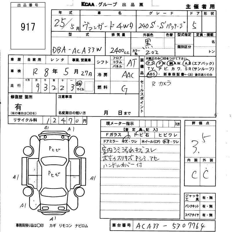 TOYOTA VANGUARD 240S S PACKAGE - лот 917
