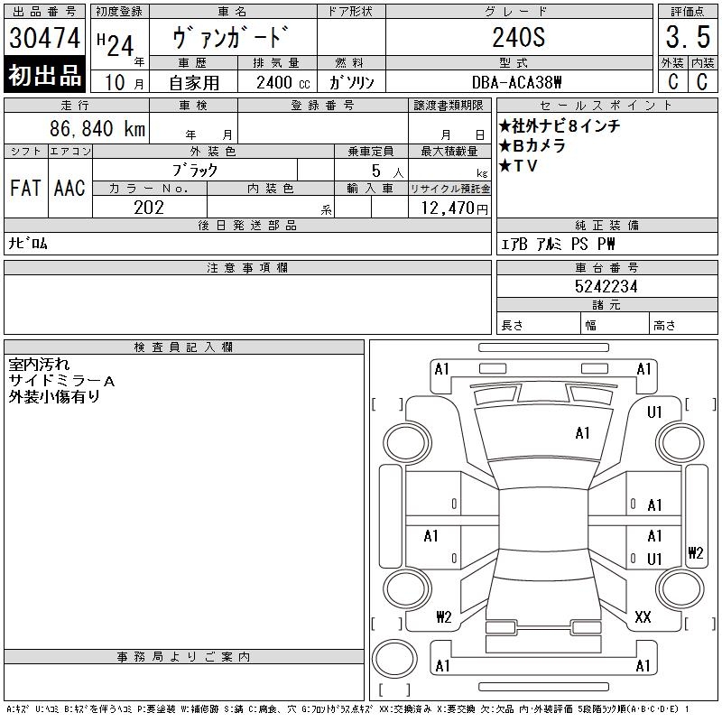 TOYOTA VANGUARD 240S - лот 30474