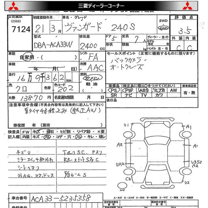 TOYOTA VANGUARD 4WD 240S - лот 7124