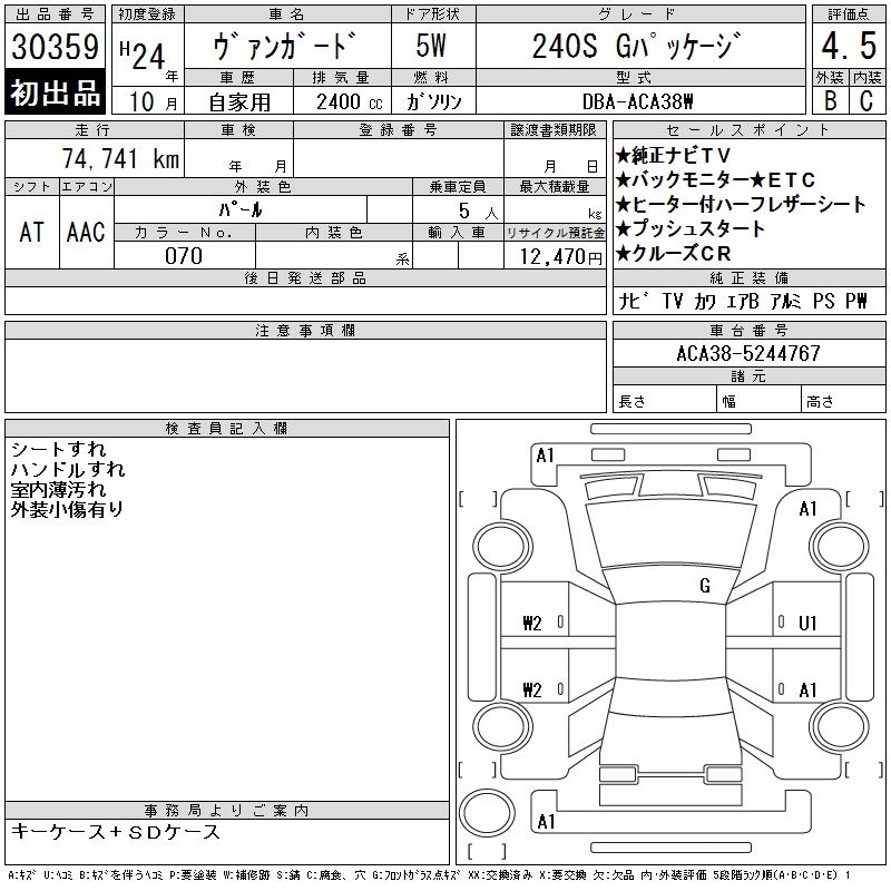 TOYOTA VANGUARD 240S G PACKAGE - лот 30359