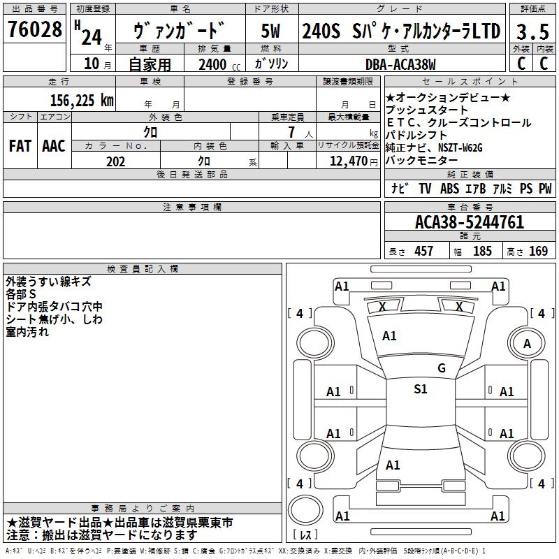 TOYOTA VANGUARD 240S S PACK * ALCANTARA LTD - лот 76028
