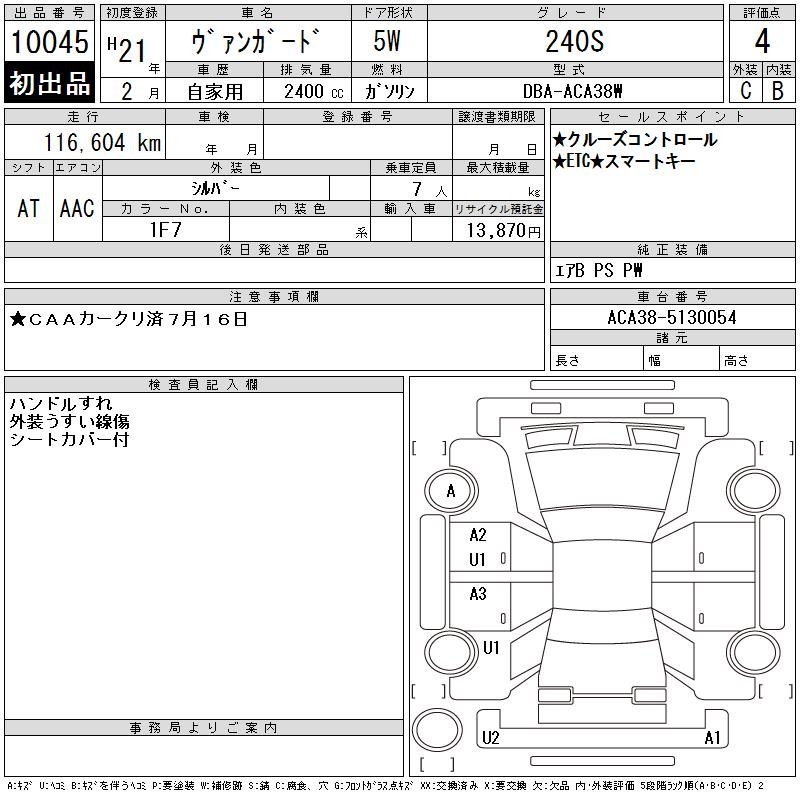 TOYOTA VANGUARD 240S - лот 10045
