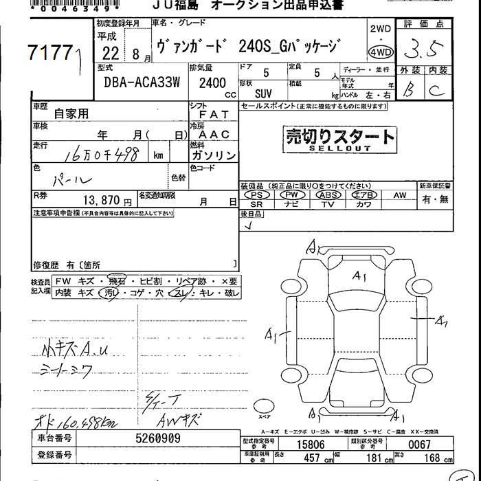 TOYOTA VANGUARD 4WD 240S G PACKAGE - лот 7177
