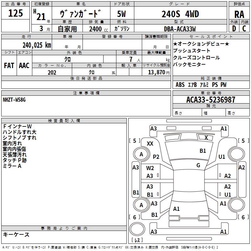 TOYOTA VANGUARD 240S 4WD - лот 125