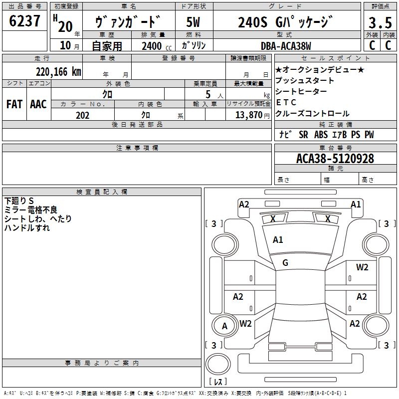 TOYOTA VANGUARD 240S G PACKAGE - лот 6237