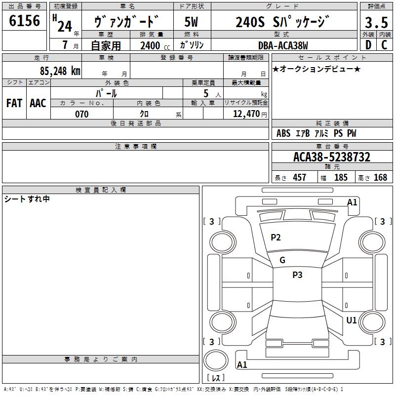 TOYOTA VANGUARD 240S S PACKAGE - лот 6156