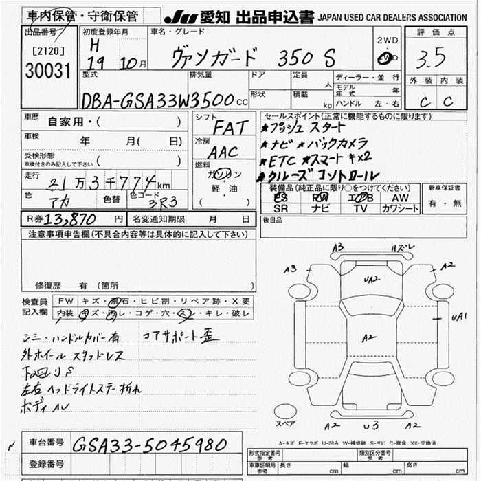 TOYOTA VANGUARD 350S 4WD - лот 30031