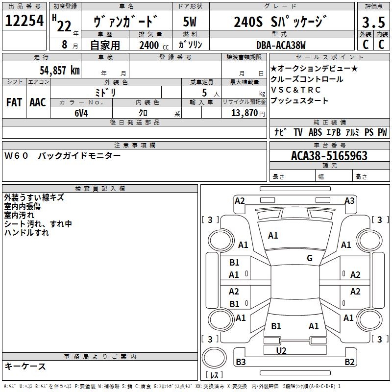 TOYOTA VANGUARD 240S S PACKAGE - лот 12254
