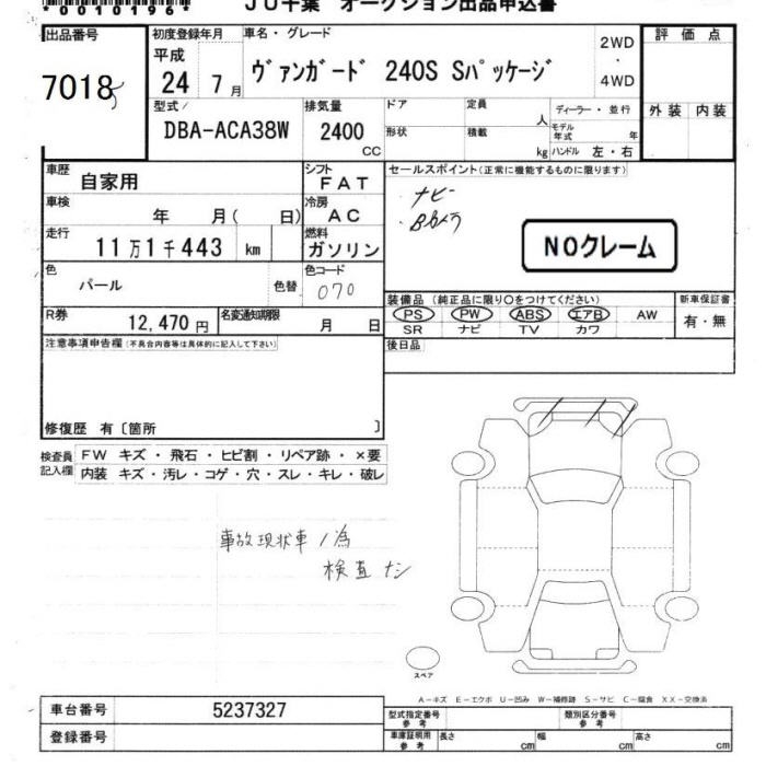 TOYOTA VANGUARD 240S S PACKAGE - лот 7018