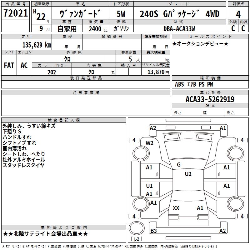 TOYOTA VANGUARD 240S G PACKAGE 4WD - лот 72021