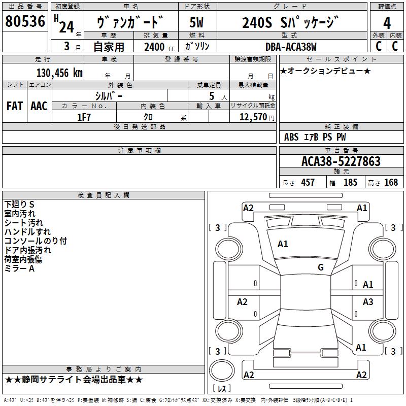 TOYOTA VANGUARD 240S S PACKAGE - лот 80536
