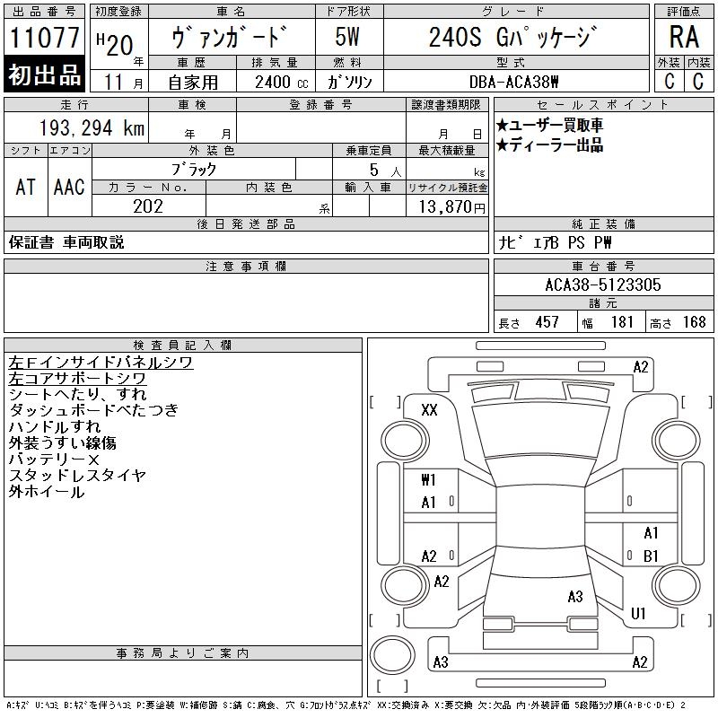 TOYOTA VANGUARD 240S G PACKAGE - лот 11077
