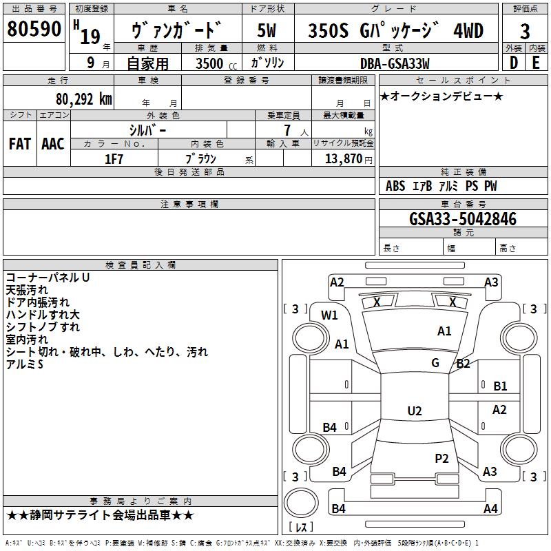 TOYOTA VANGUARD 350S G PACKAGE 4WD - лот 80590