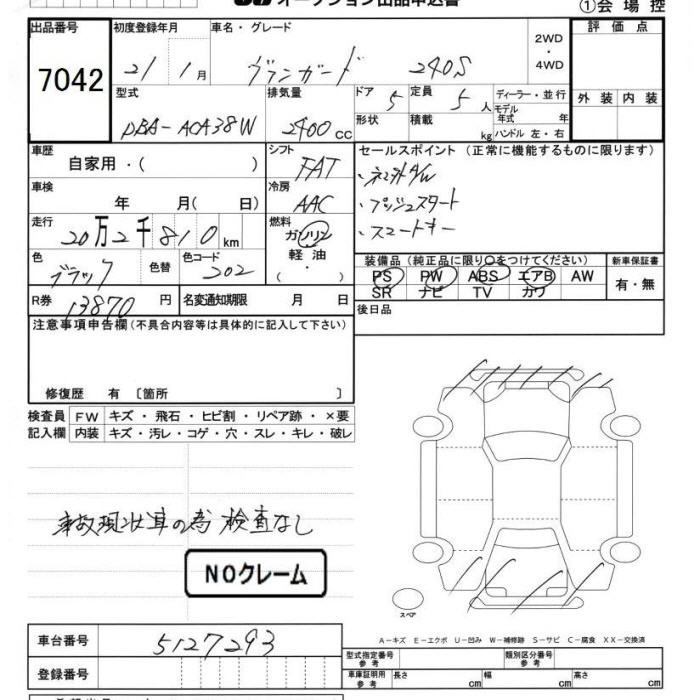 TOYOTA VANGUARD 240S - лот 7042