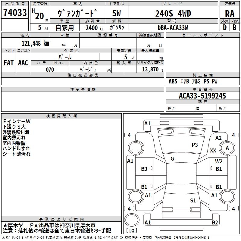 TOYOTA VANGUARD 240S 4WD - лот 74033
