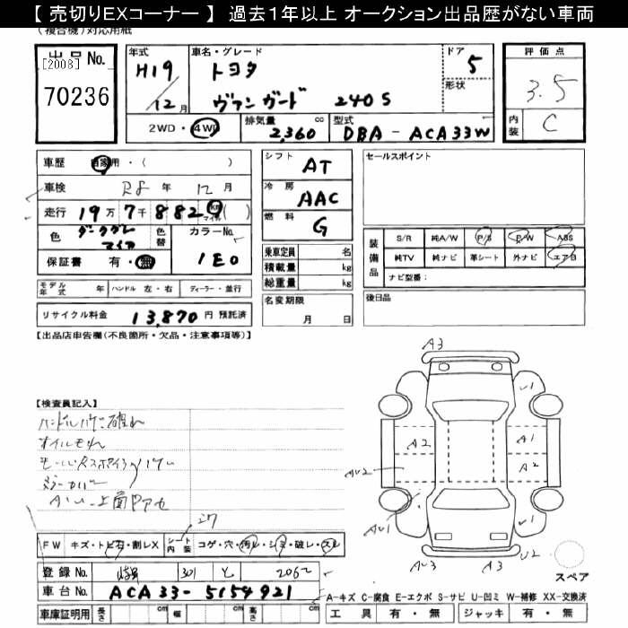 TOYOTA VANGUARD 4WD 240S - лот 70236