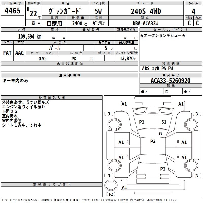 TOYOTA VANGUARD 240S 4WD - лот 4465