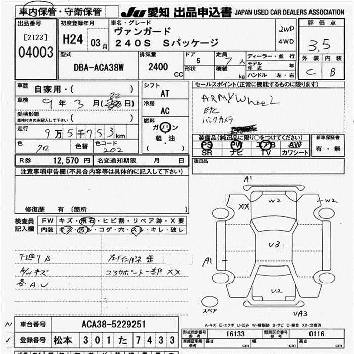 TOYOTA VANGUARD 240S S PACKAGE - лот 4003