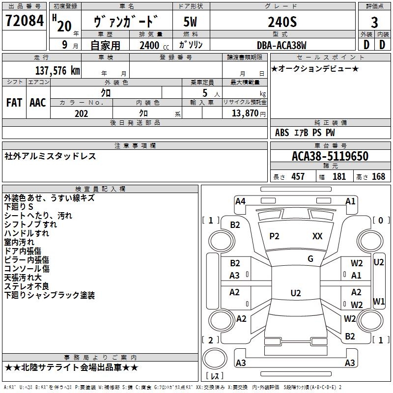 TOYOTA VANGUARD 240S - лот 72084