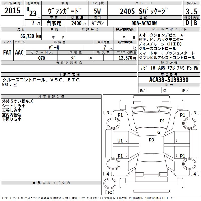 TOYOTA VANGUARD 240S S PACKAGE - лот 2015