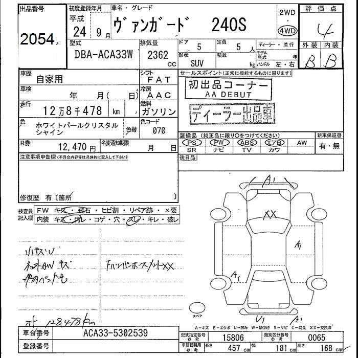 TOYOTA VANGUARD 4WD 240S - лот 2054
