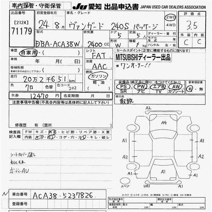 TOYOTA VANGUARD 240 S PACKAGE - лот 71179