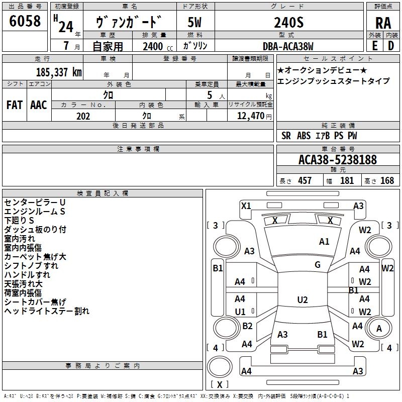 TOYOTA VANGUARD 240S - лот 6058