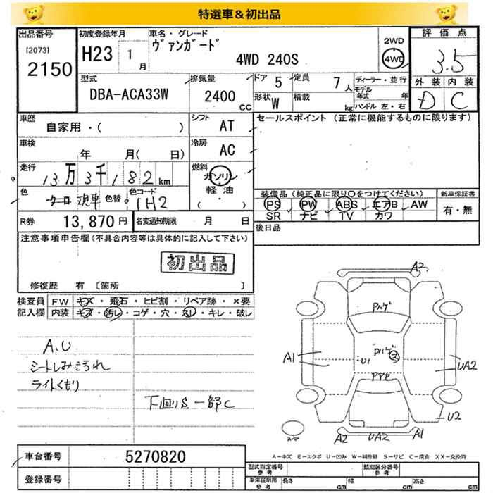 TOYOTA VANGUARD 4WD 240S - лот 2150
