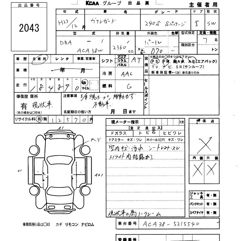 TOYOTA VANGUARD 240S S PACKAGE - лот 2043