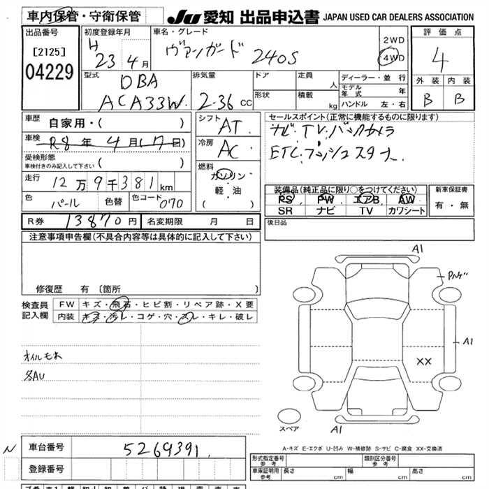 TOYOTA VANGUARD 240S 4WD - лот 4229