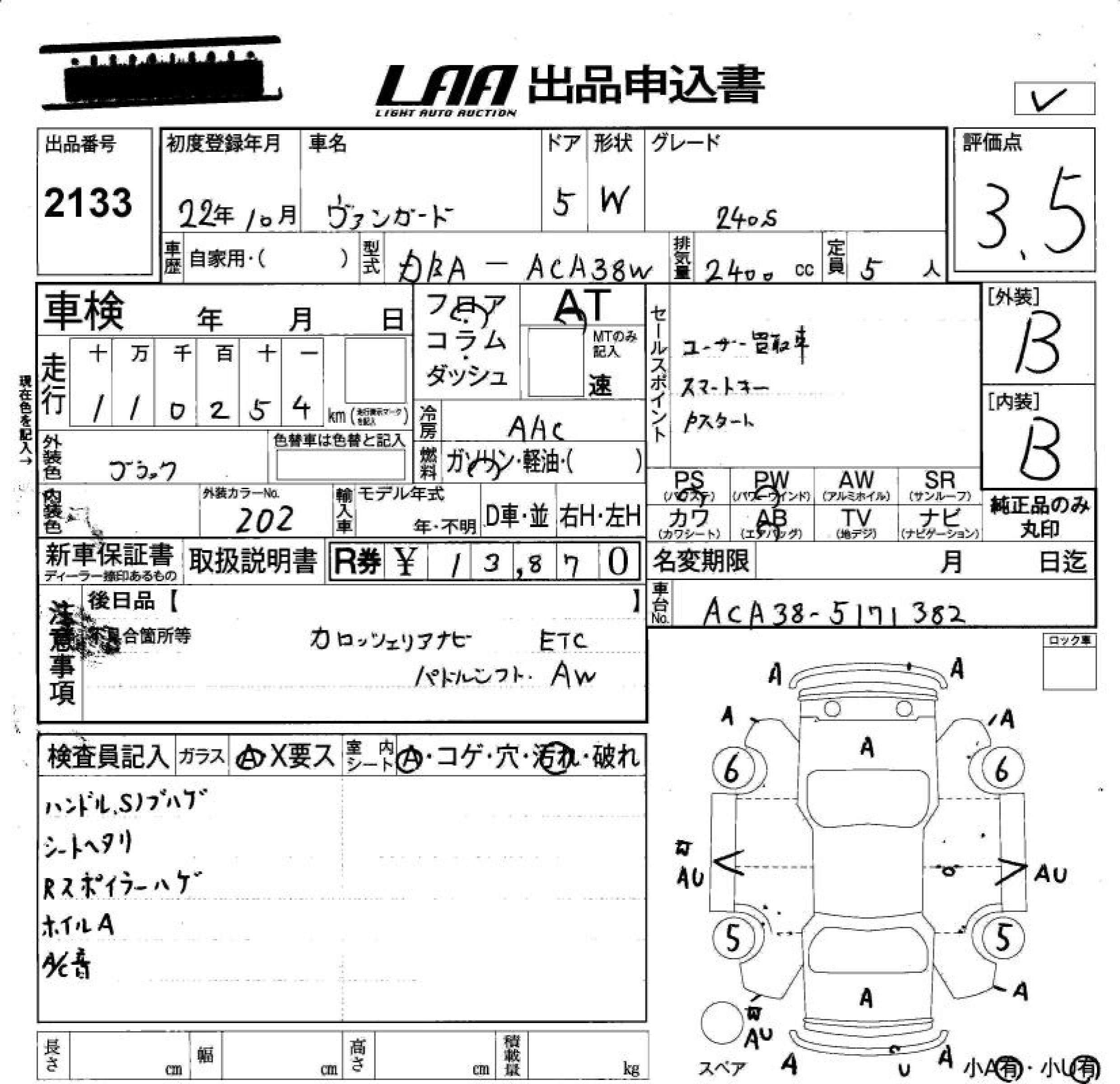 TOYOTA VANGUARD 240S - лот 2133