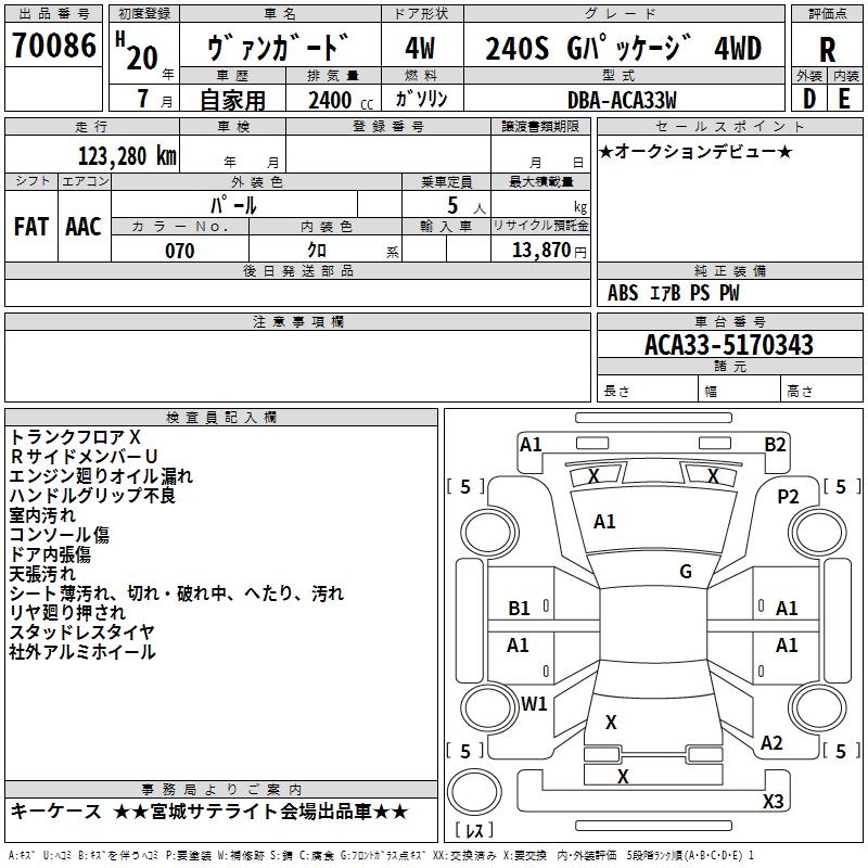 TOYOTA VANGUARD 240S G PACKAGE 4WD - лот 70086