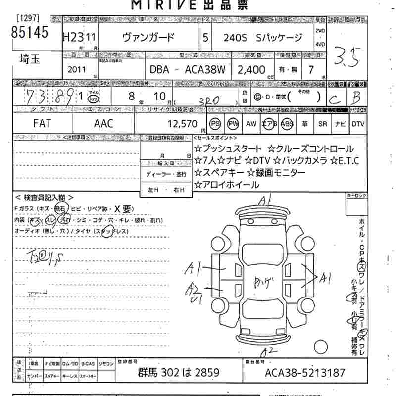 TOYOTA VANGUARD 240S S PACKAGE - лот 85145