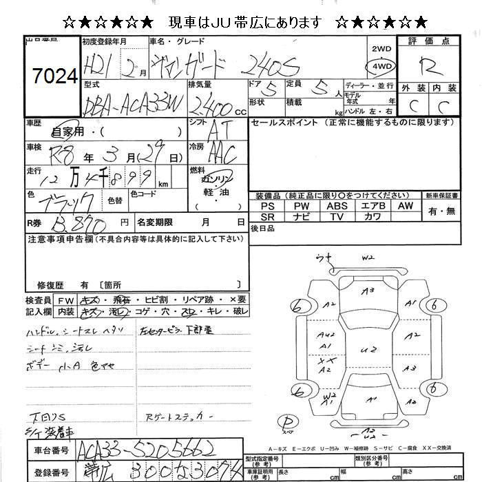 TOYOTA VANGUARD 4WD 240S - лот 7024