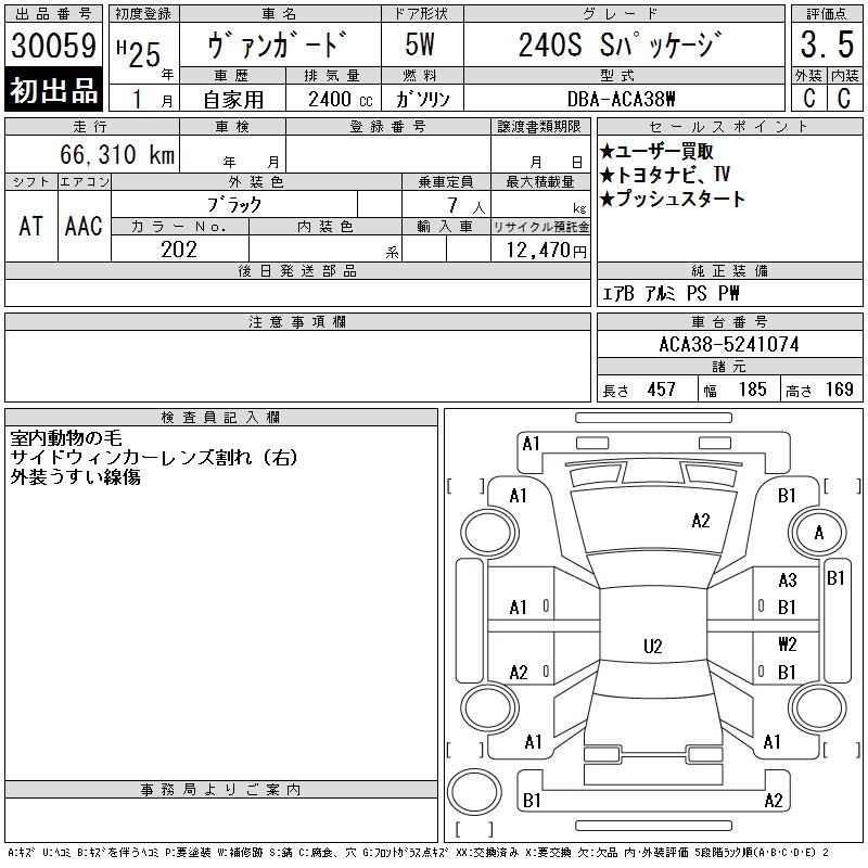 TOYOTA VANGUARD 240S S PACKAGE - лот 30059