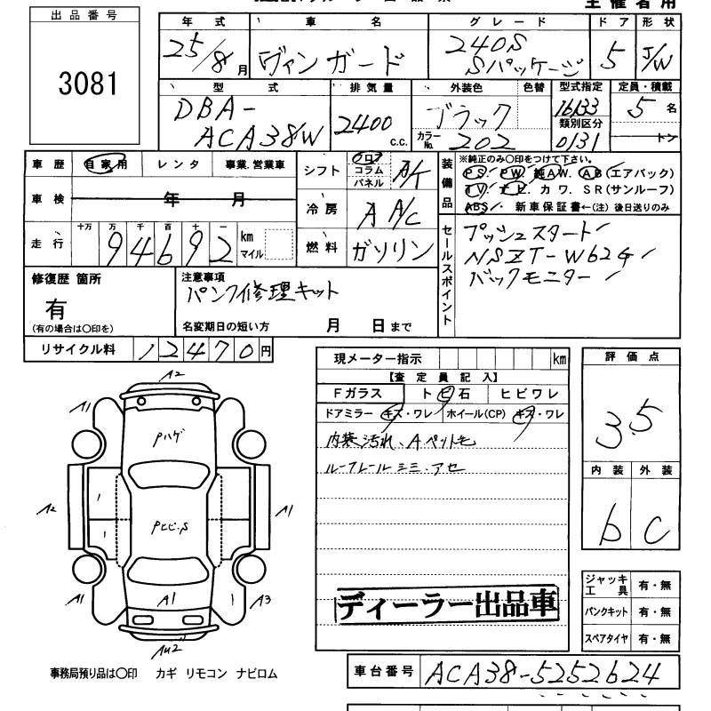 TOYOTA VANGUARD 240S S PACKAGE - лот 3081