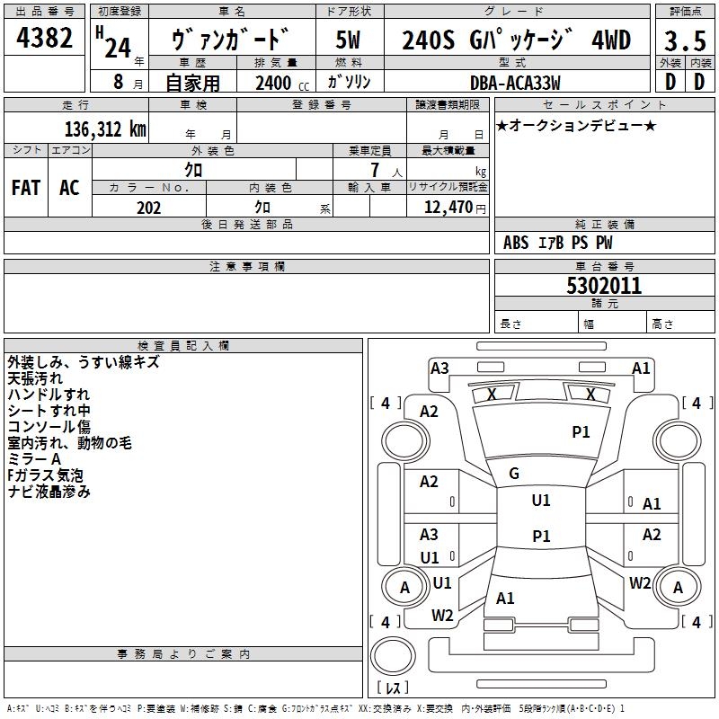 TOYOTA VANGUARD 240S G PACKAGE 4WD - лот 4382