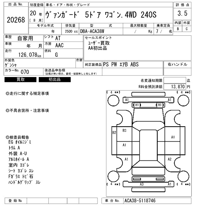 TOYOTA VANGUARD WAGON.4WD - лот 20268