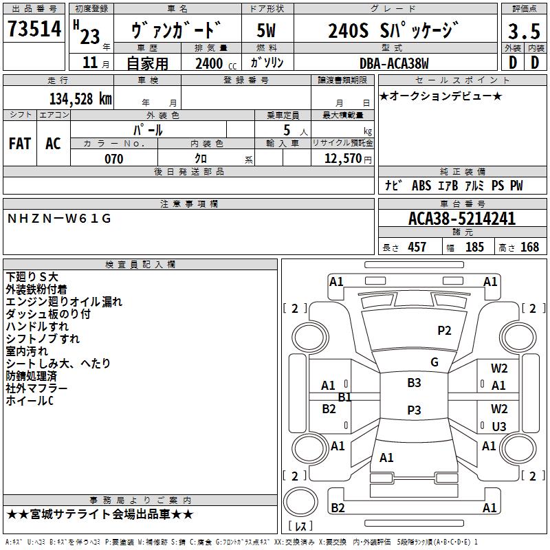 TOYOTA VANGUARD - лот 73514
