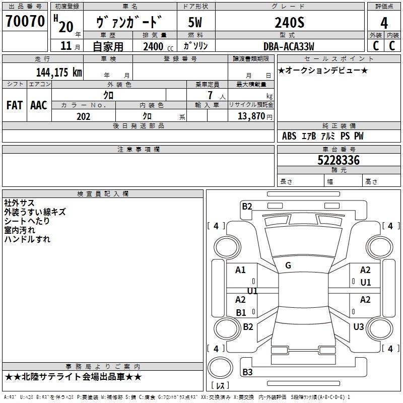 TOYOTA VANGUARD - лот 70070