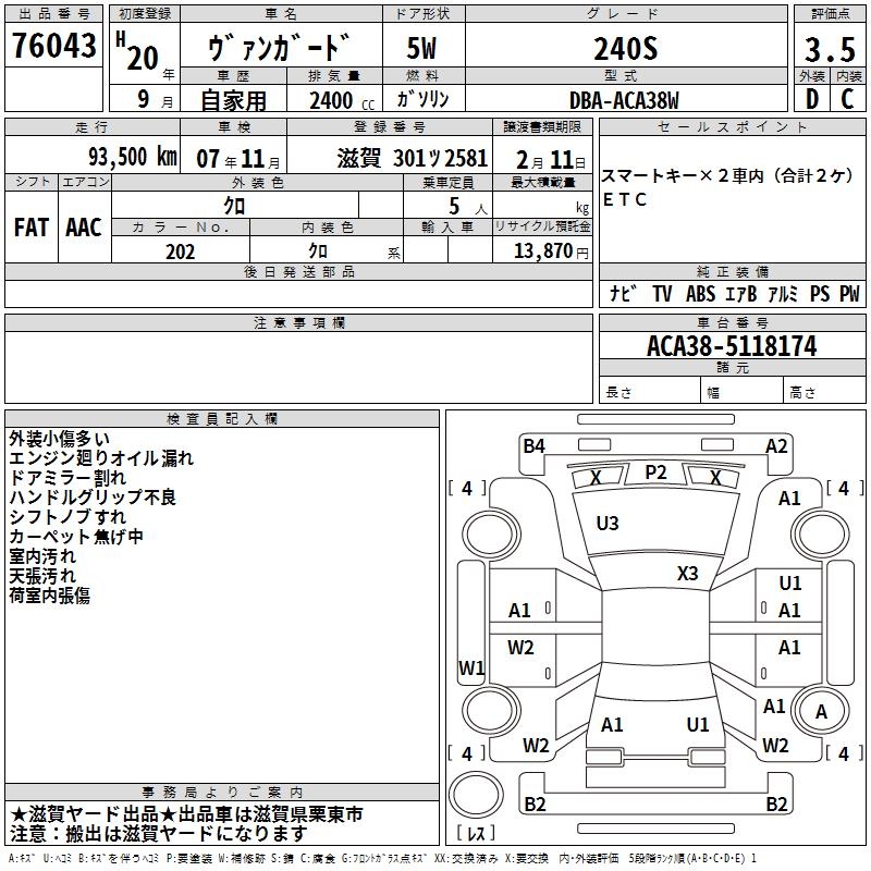 TOYOTA VANGUARD - лот 76043