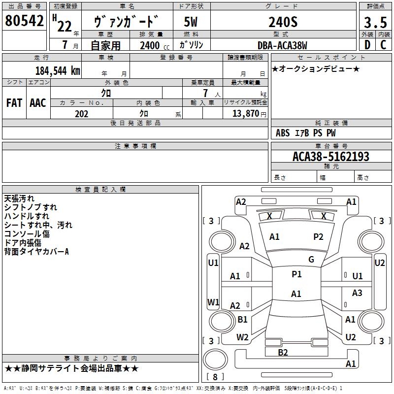 TOYOTA VANGUARD - лот 80542
